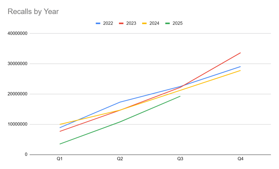 • YTD 2025 Total Vehicles Affected (Q1–Q3): 18,902,597 vehicles
