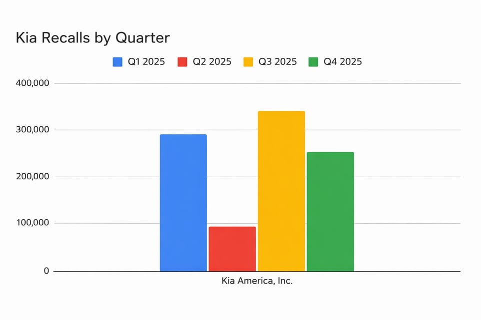 Kia accounted for roughly 3.5% of all recalled vehicles in 2025, placing it in line with broader industry patterns. Like many across the market, recent Kia recalls have spanned a mix of software, electrical, and core vehicle systems, reflecting the increasing technical complexity of modern vehicles.